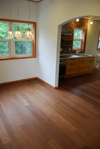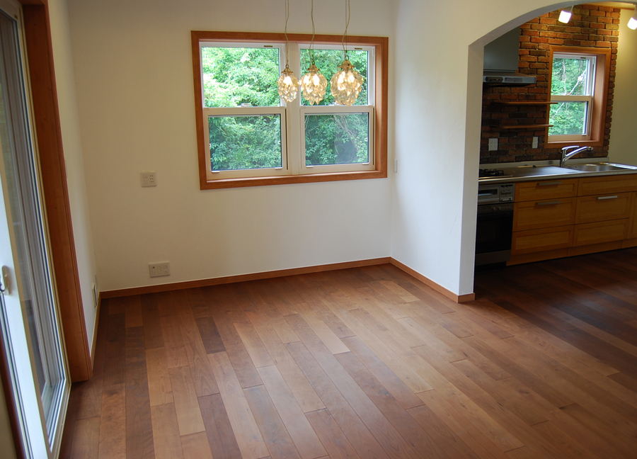 古めかしい雰囲気をもちながら湿気や腐食に強い広葉樹のバーチ(カバノキ)無垢フローリングです。 なんとなく古めかしく懐かしい雰囲気が心をくすぐります。 古民家の再生やレトロな建物のリフォームにも最適な羽目板とフローリング材です。